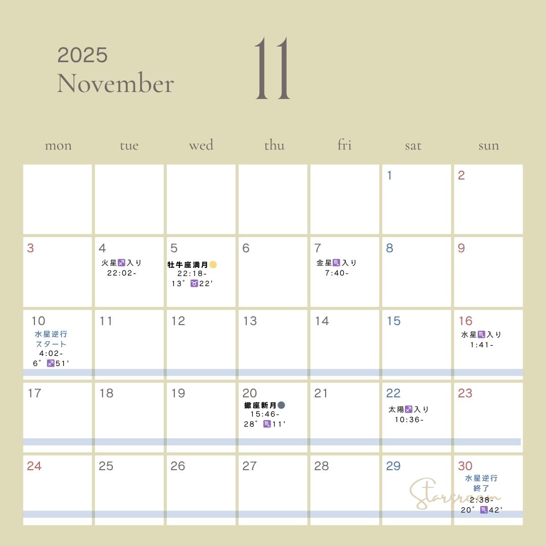 この記事では、2025年11月の星の動きをカレンダーにまとめ、